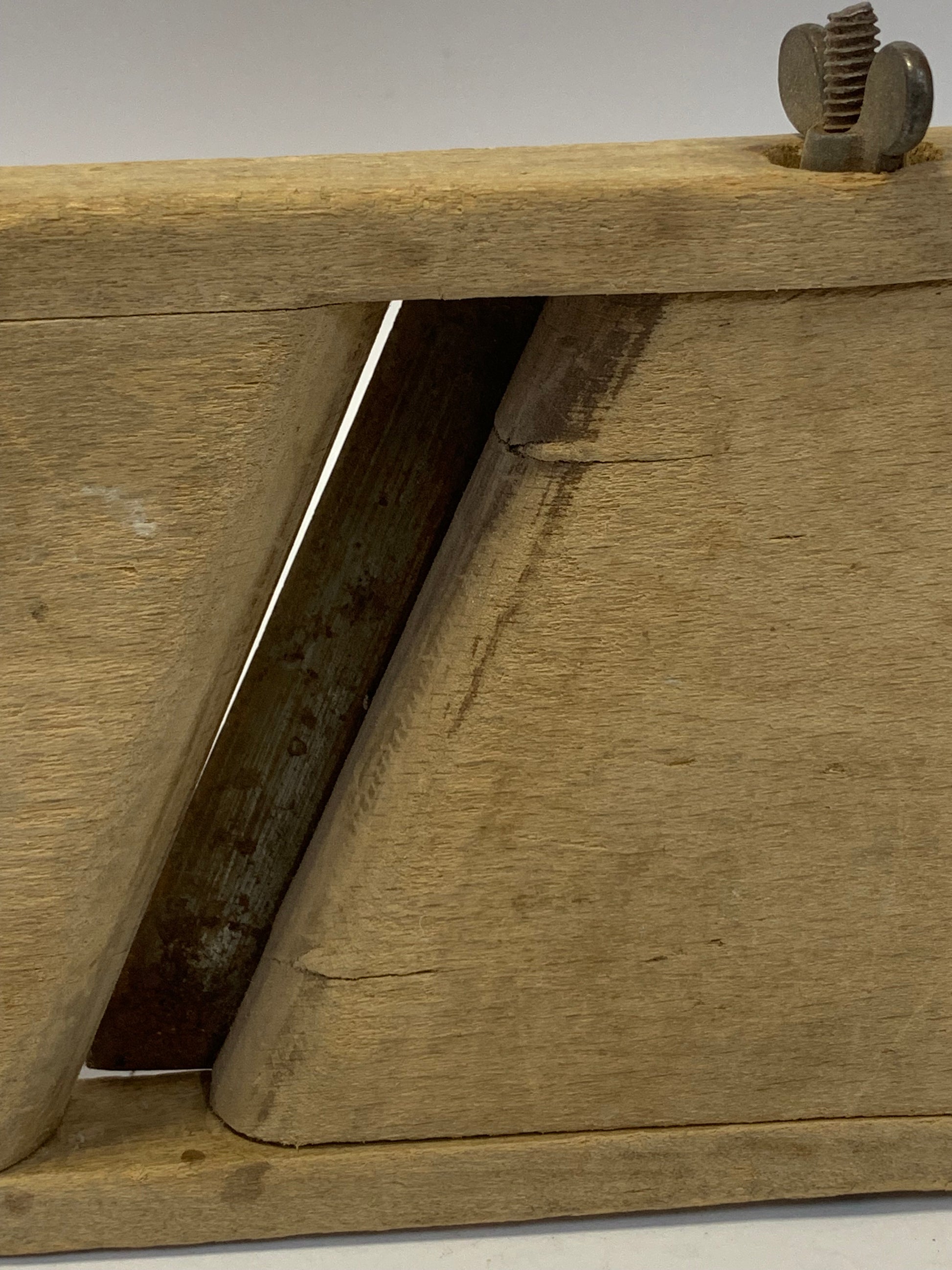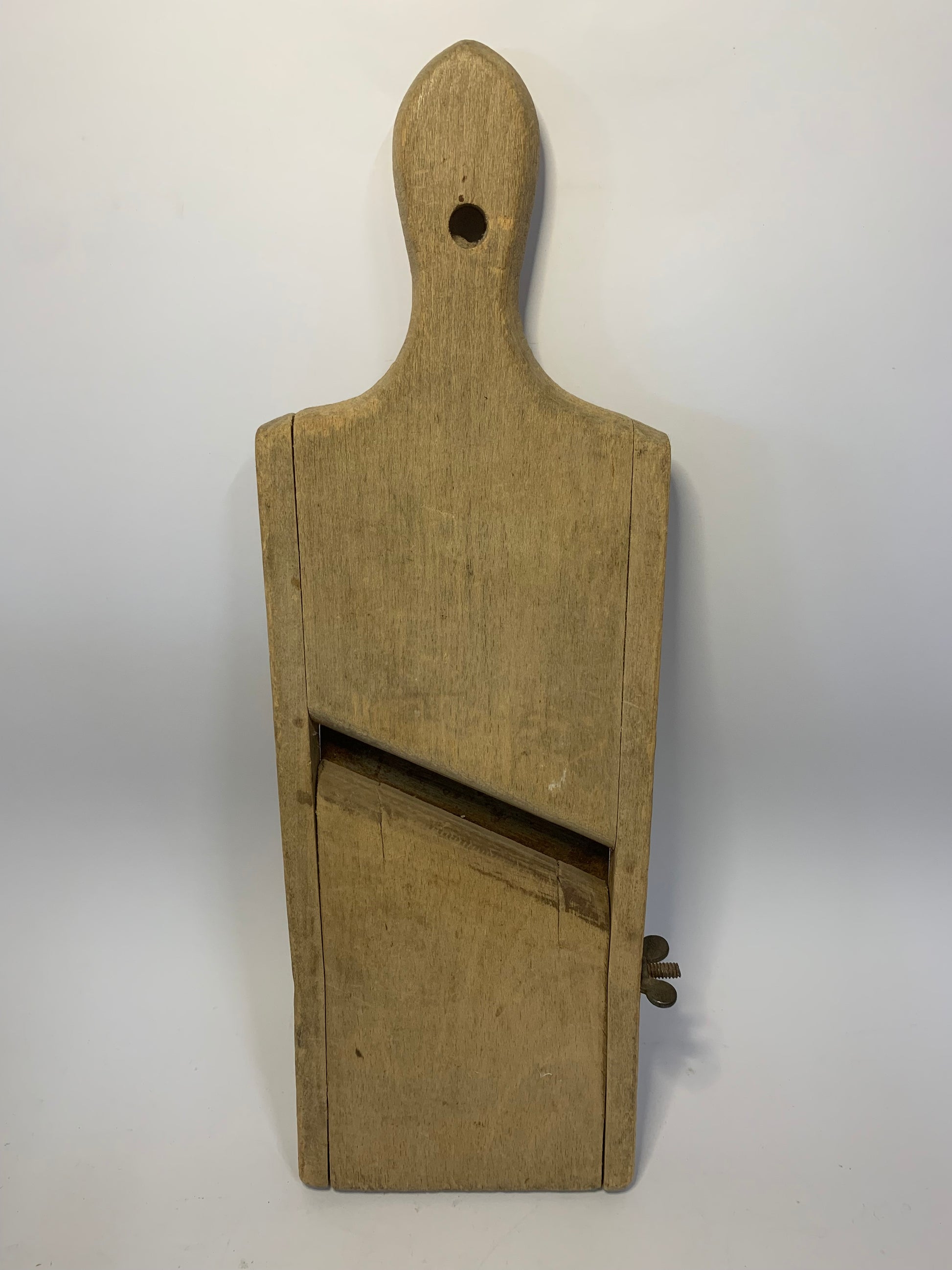 .Function: Used for slicing vegetables, particularly cabbage for sauerkraut, potatoes, cucumbers, and other firm produce. The adjustable blade allowed users to control slice thickness by moving the wooden bed closer or farther from the blade.