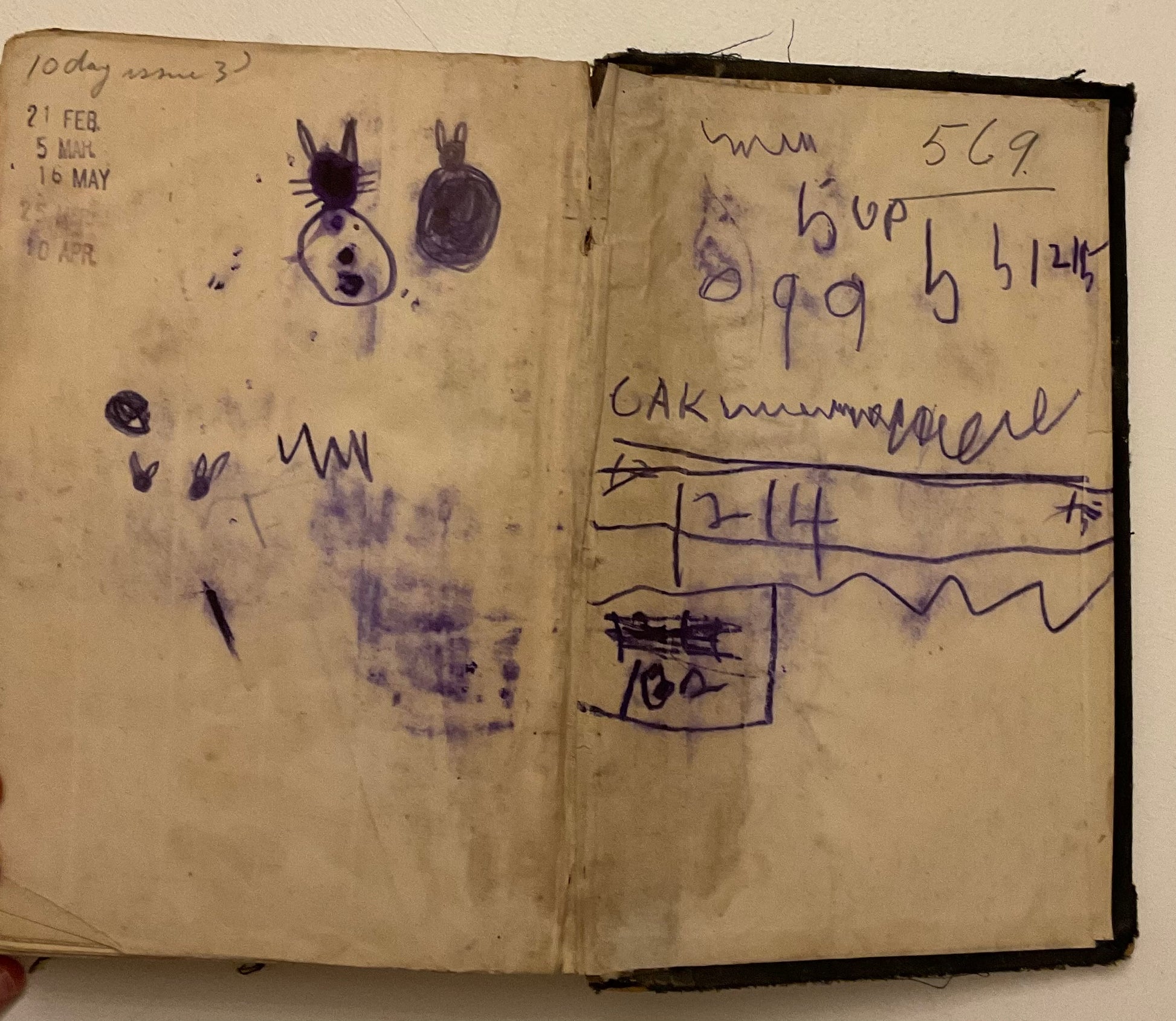 Condition: Fair to poor. Binding is fragile and worn, spine damaged, cover edges chipped. Pages show age toning, foxing, stains, doodles, and ink marks. Several pages are reinforced with tape. Despite its heavy wear, it remains a rare survival of an uncommon title.