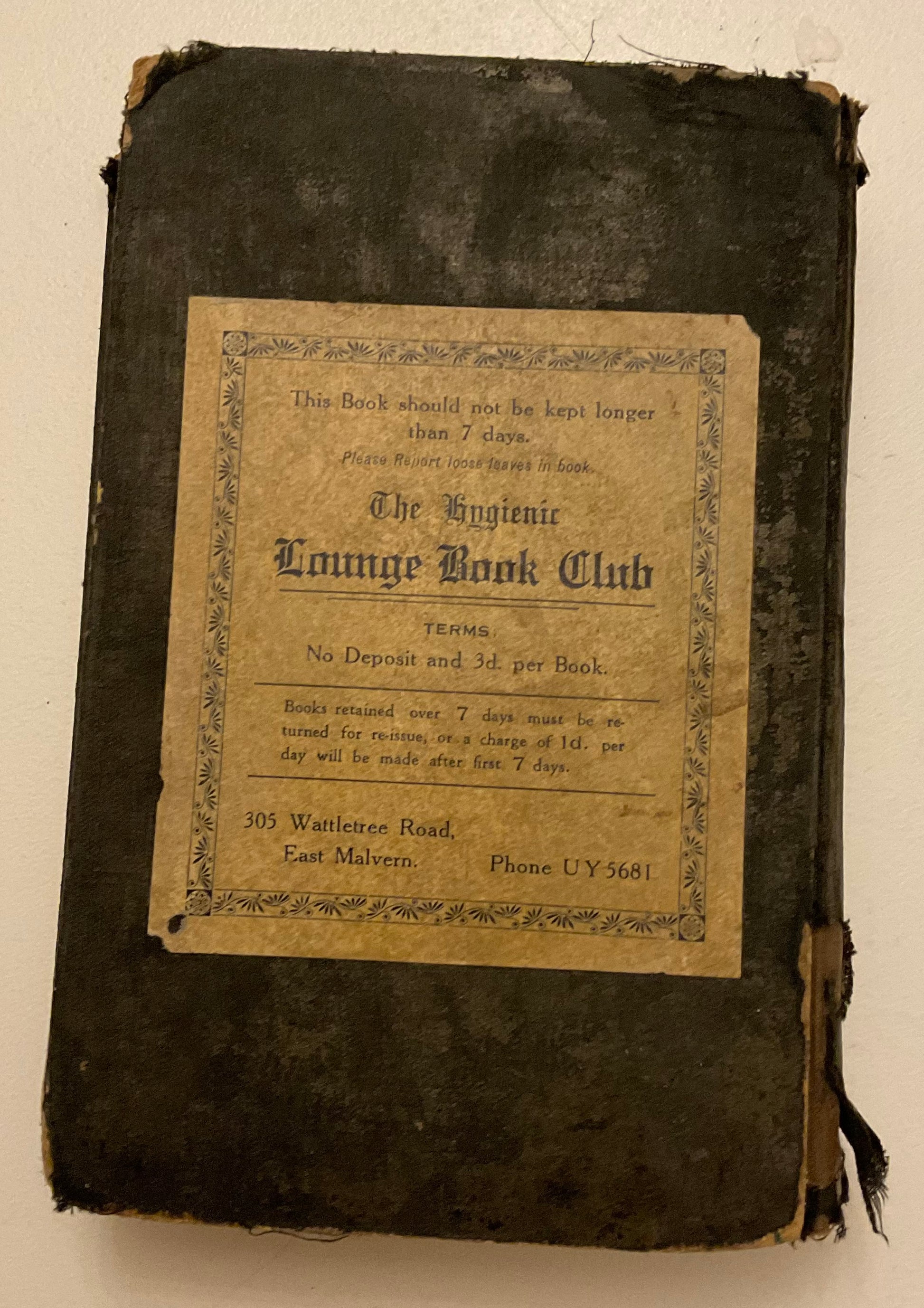 This copy features a striking original Art Deco design by Barnes (though in heavily worn condition). The book was once part of the Hygienic Lounge Book Club, East Malvern (as stamped inside), adding to its provenance and lending-library history.