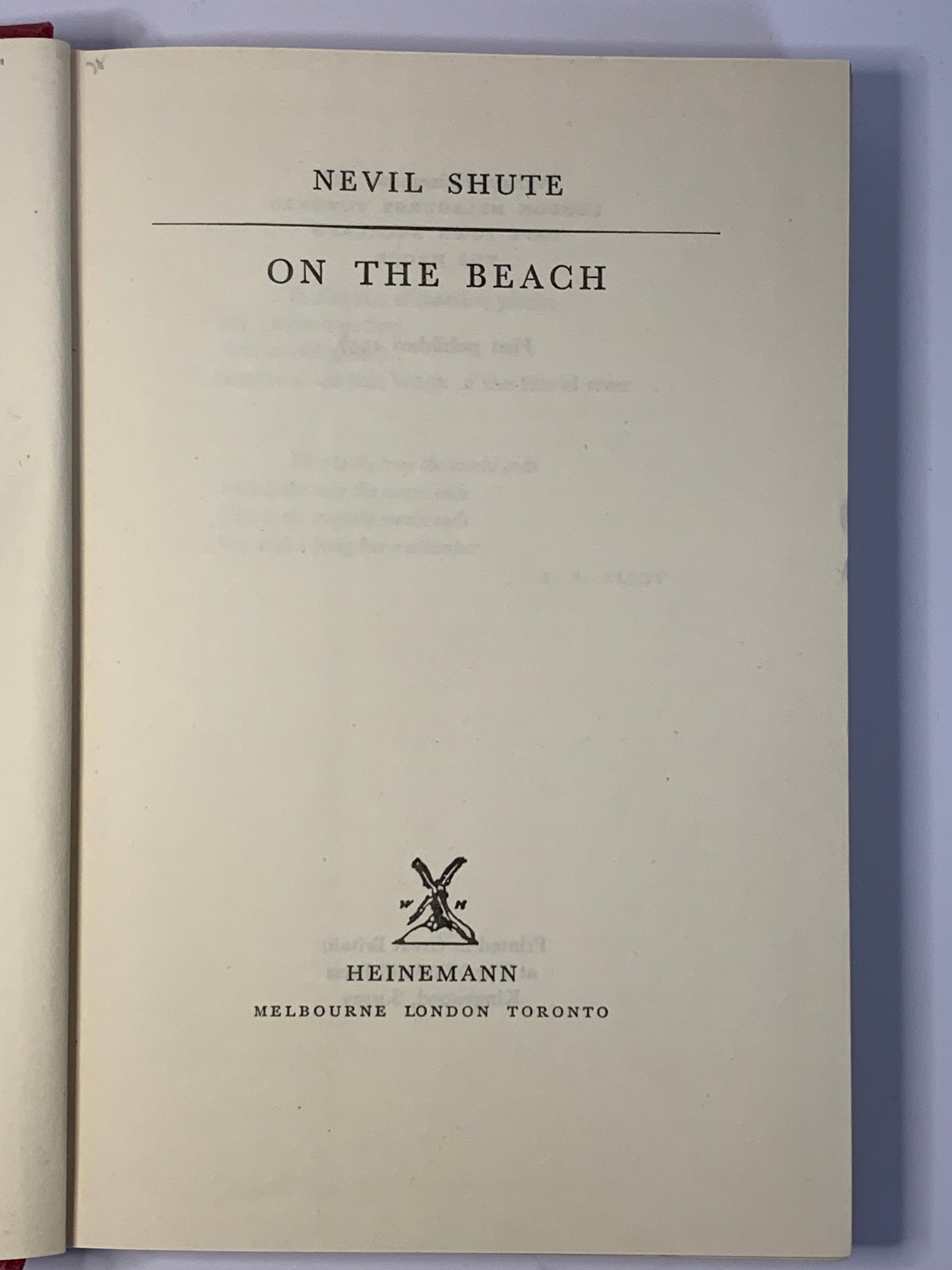 This is a first edition of Nevil Shute’s landmark post-apocalyptic novel “On the Beach,” published by William Heinemann Ltd in 1957. This powerful and prophetic work remains one of the most significant novels of the Cold War era.