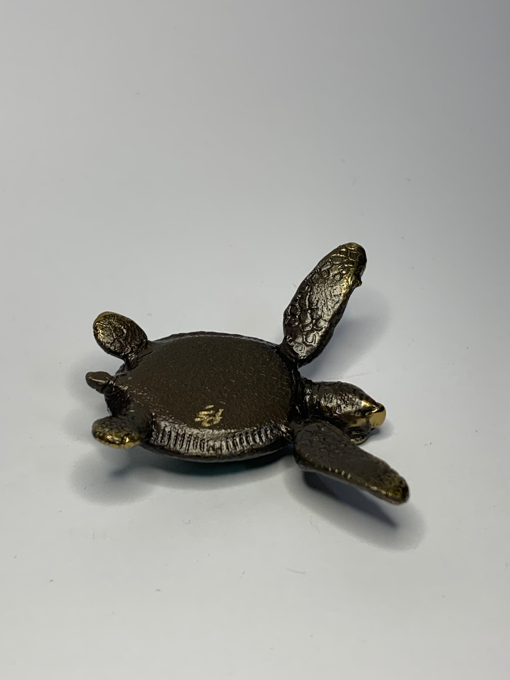 Pete and Louise Smit of Cobble Cast Australia have been creating bronze sculptures for more than 30 years from their Queensland foundry using the traditional lost wax process.Pete Smit specifically creates bronze turtle sculptures with blue/green patina on the shell, and they are hand cast, signed, and made using the lost wax technique. The bronze construction, the distinctive green patinated shell, and the high level of detail in the casting all align with his signature style.