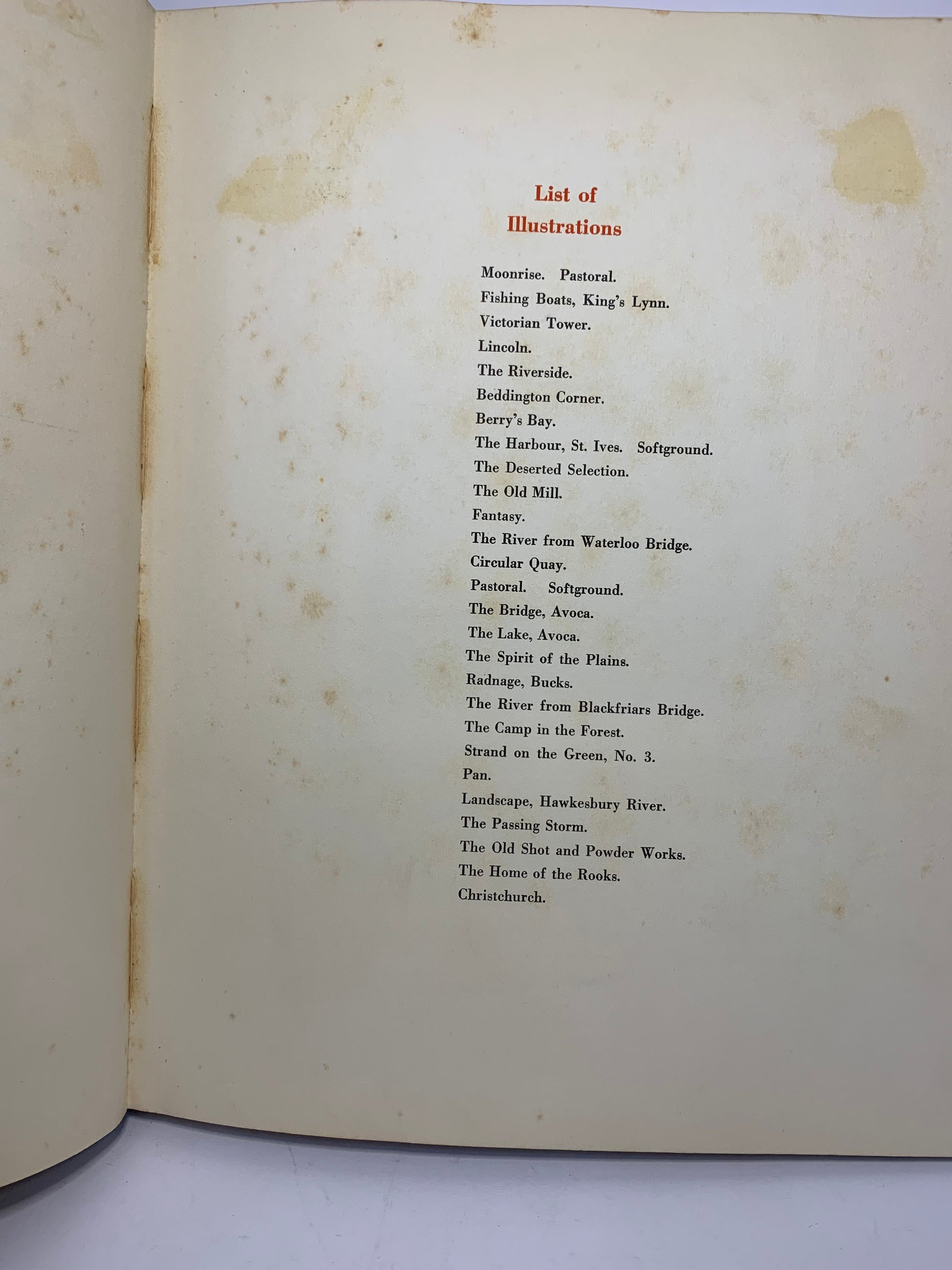 Condition: Good vintage condition considering age. Shows expected wear including foxing/age spotting throughout pages, some water staining visible on list of illustrations page, spine has vertical creasing/stress marks, covers show edge wear and soiling. Binding remains intact and sound. All pages present.