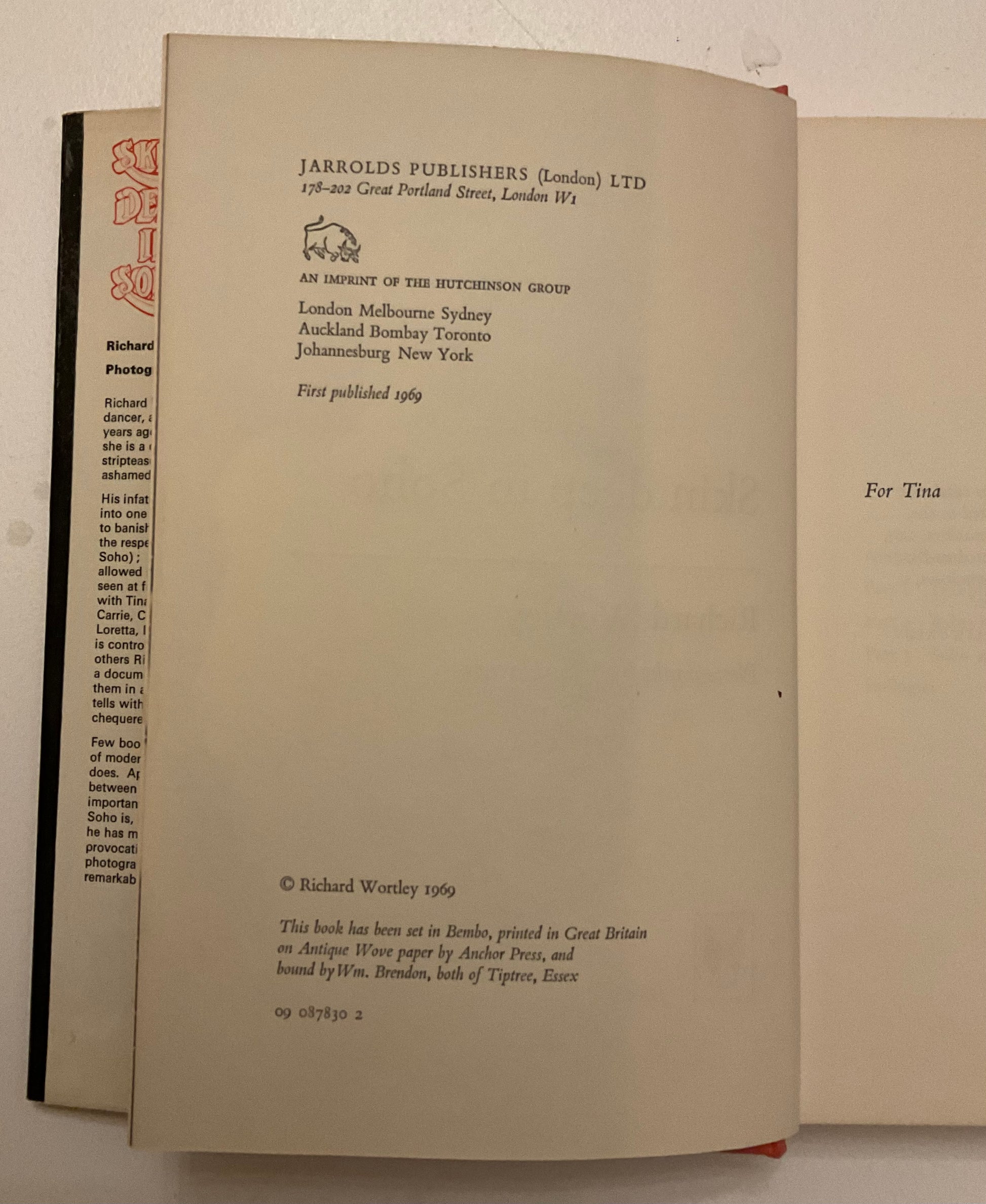 Skin Deep in Soho by Richard Wortley (1969, first edition, Jarrolds Publishers, London) is a rare and highly collectible title exploring the nightlife, strip clubs, and underground culture of Soho during the 1960s. Featuring evocative black-and-white photography, it documents the performers and atmosphere of a district that became synonymous with both glamour and vice. This copy retains its original dust jacket, with striking cover art and period back-cover collage. A fascinating social document and a sought-after piece for collectors of vintage photography, cultural history, or London ephemera. Hard cover with dust jacket. Stain on inside of dust jacket which is not visible when in place. Otherwise generally good condition with some edge wear on dust jacket.
