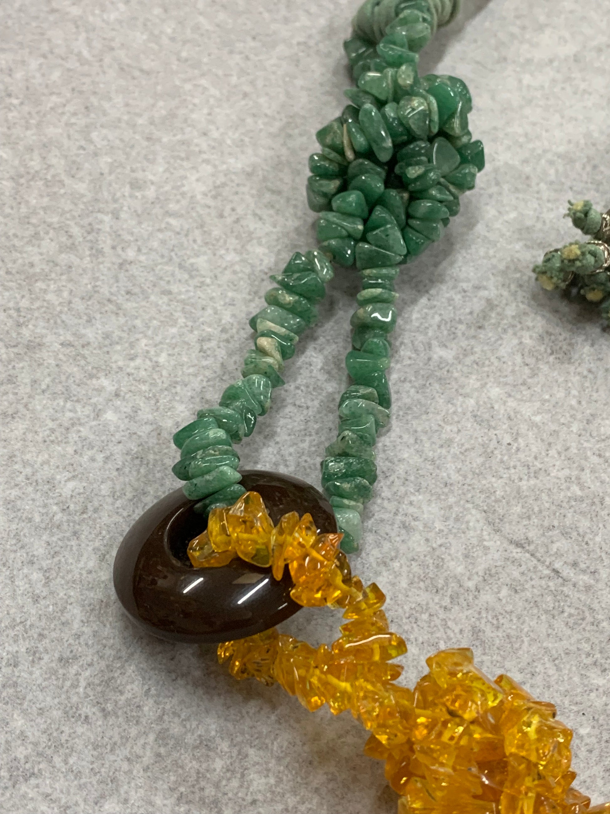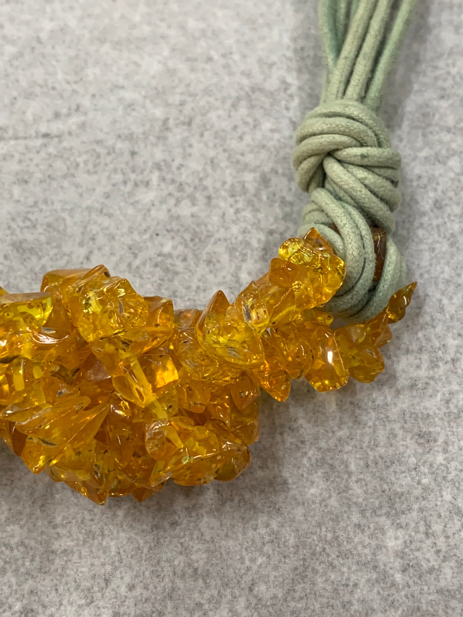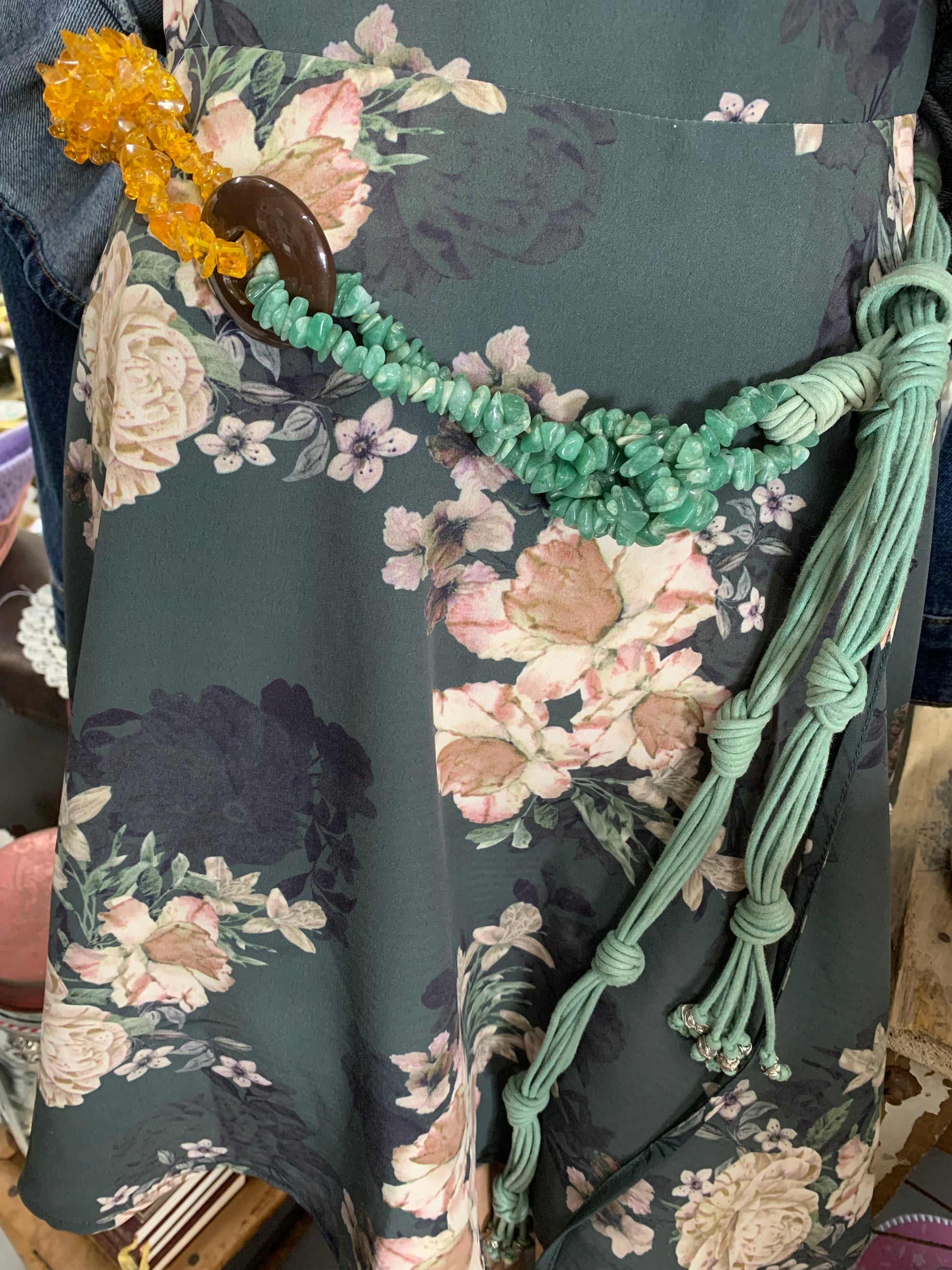 A very funky belt with adjustable tie closure with tasseled ends. There is a little bit of age fading on the cord but a lovely belt nevertheless that fits well into the bohemian/hippie aesthetic.