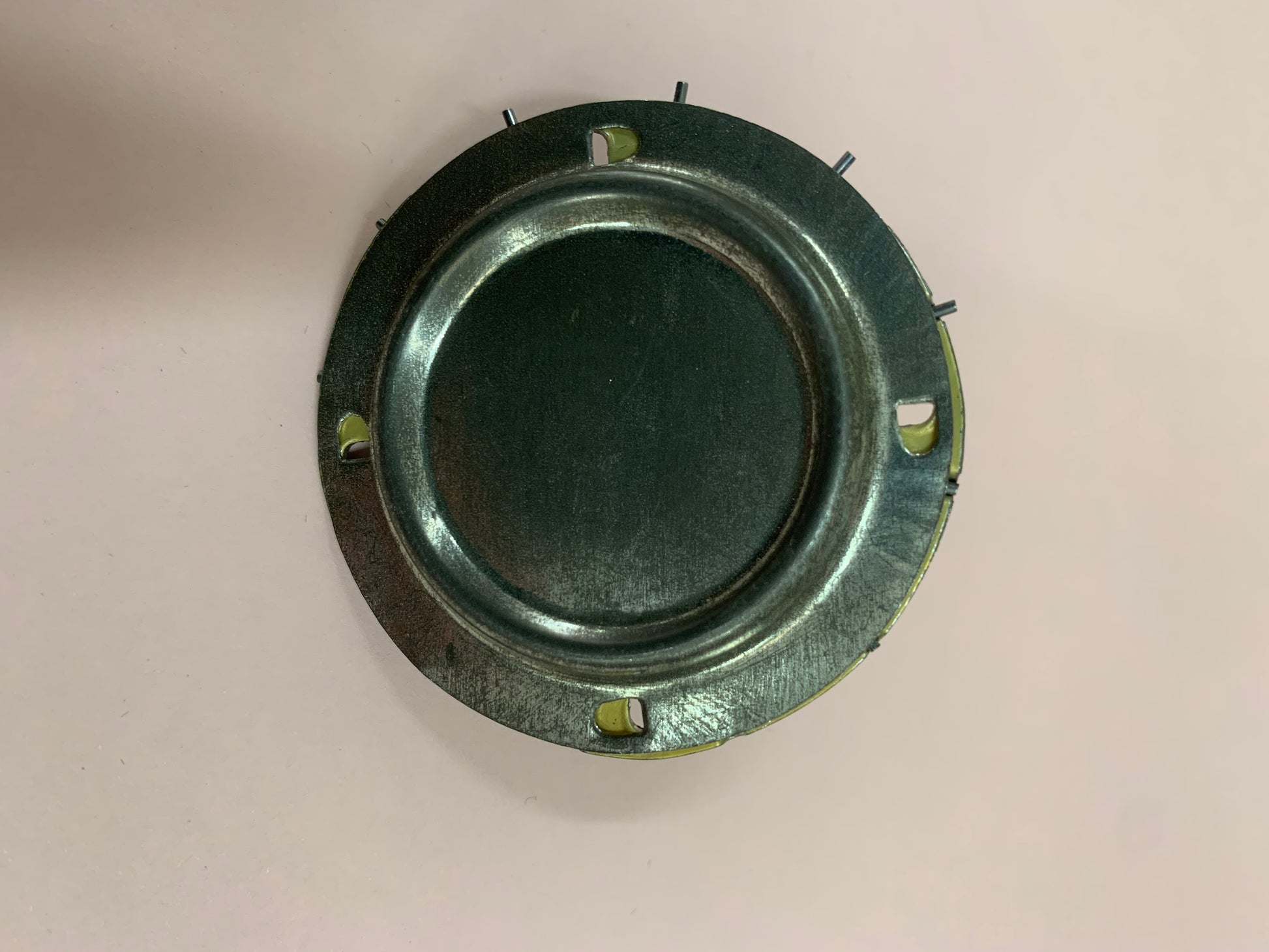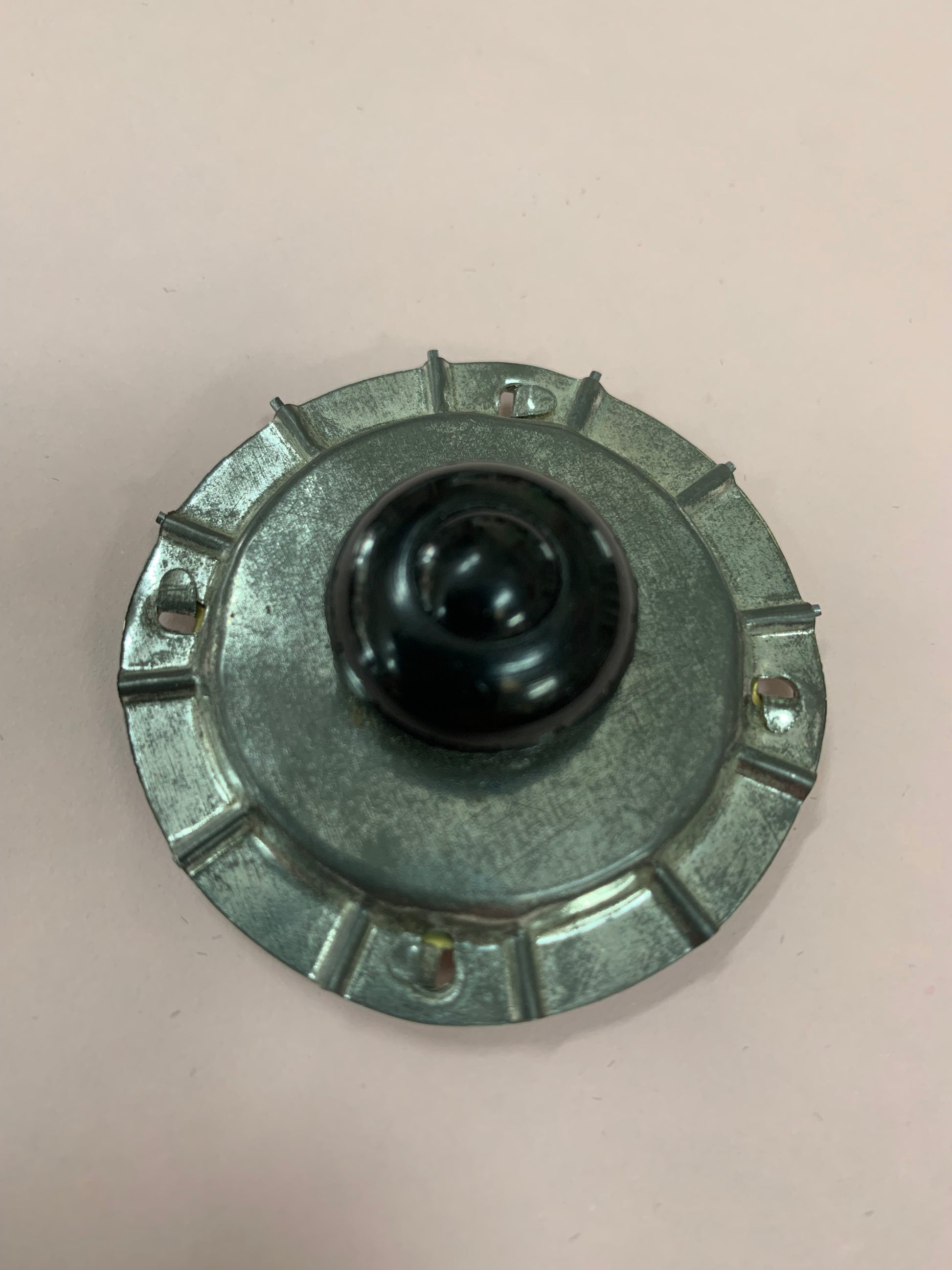 • Material: Metal frame (likely zinc or pewter-finished) with Bakelite center knob/handle