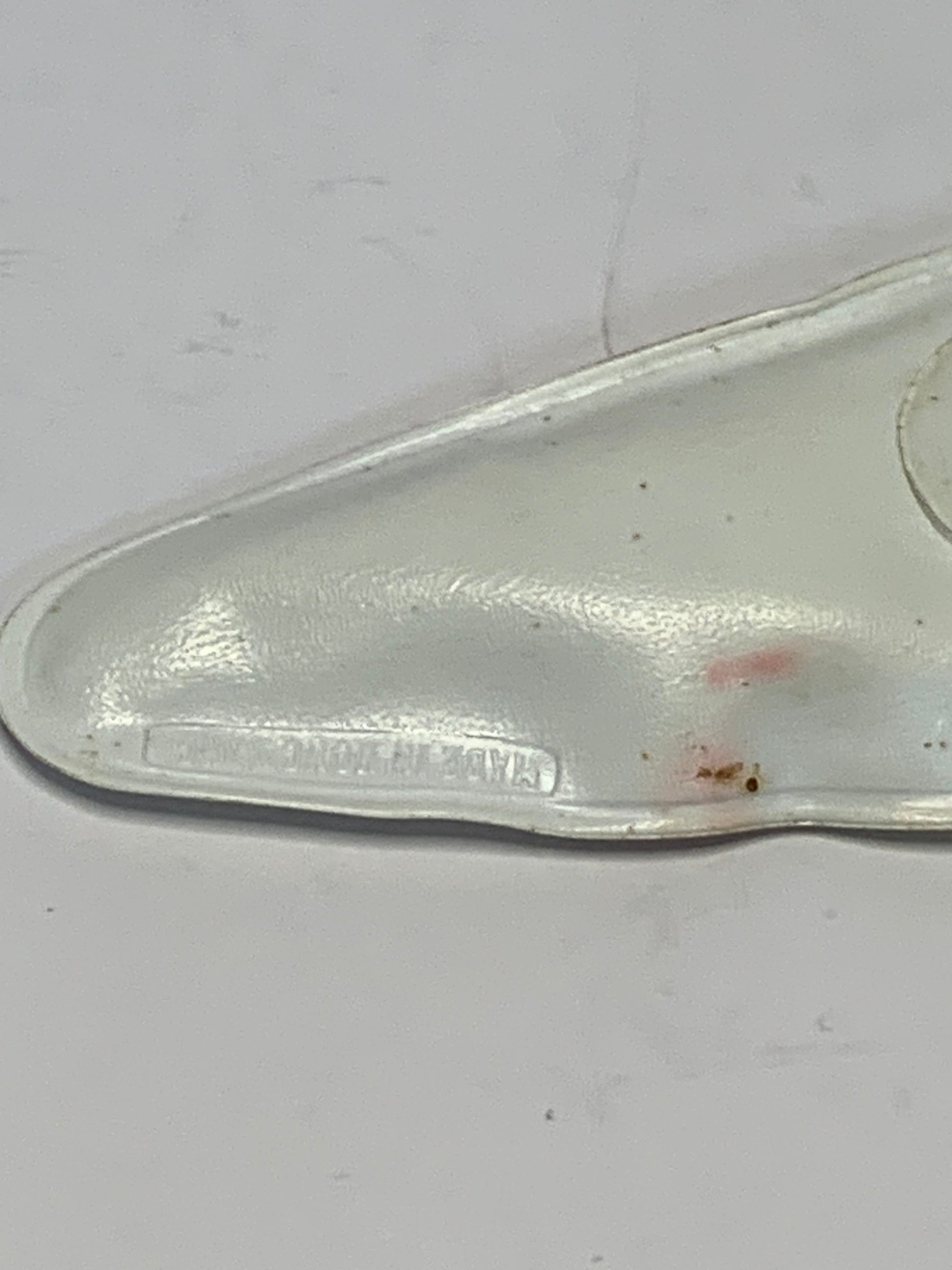 Plastic novelty keyring featuring three miniature coloured screwdrivers. The keychain has a triangular or arrow-shaped transparent housing that holds the screwdrivers. Attached to a chrome-plated metal keyring with chain. A novelty item in miniature form. The piece shows some wear and minor scratches consistent with use. Made in Hong Kong.