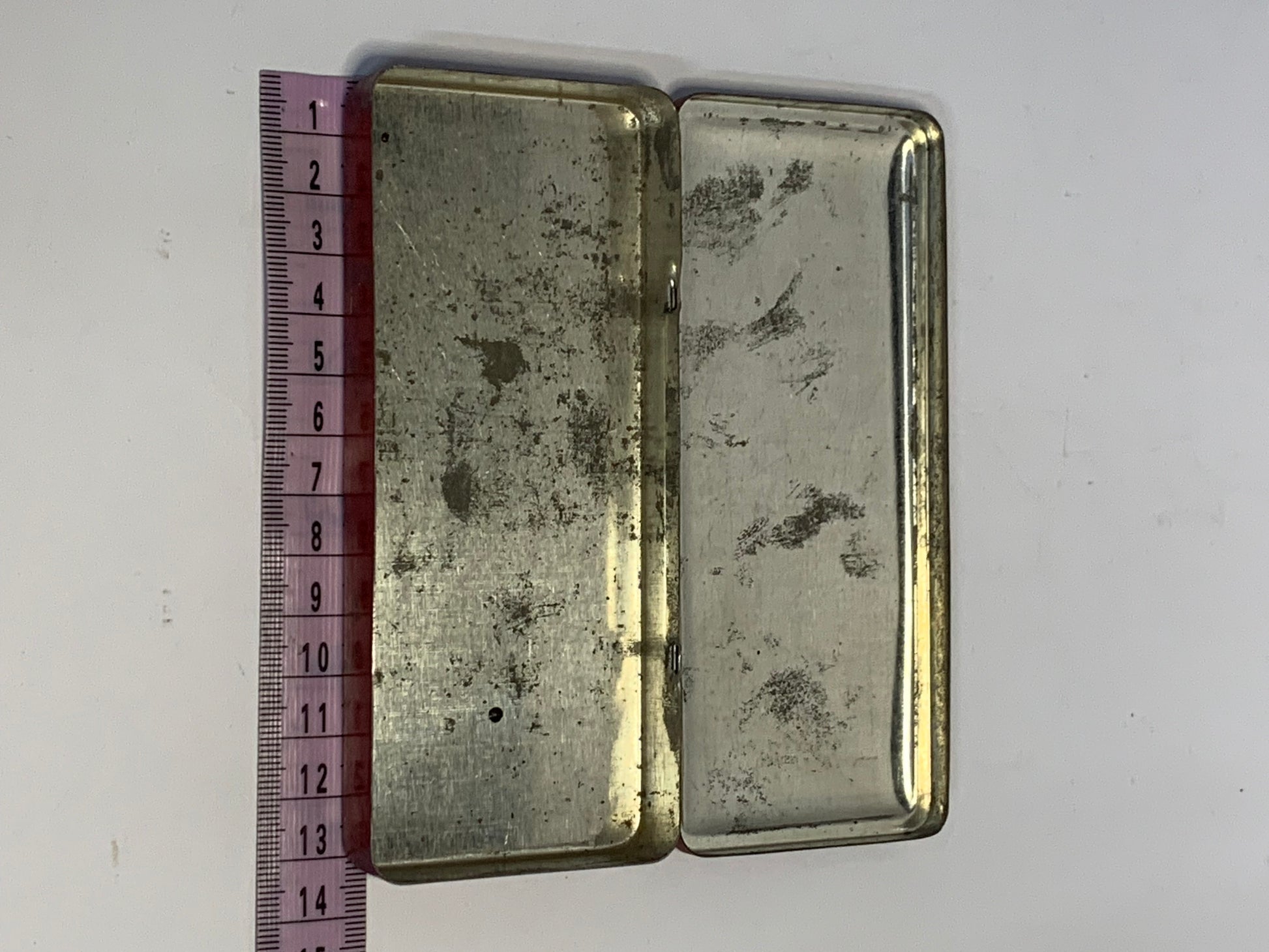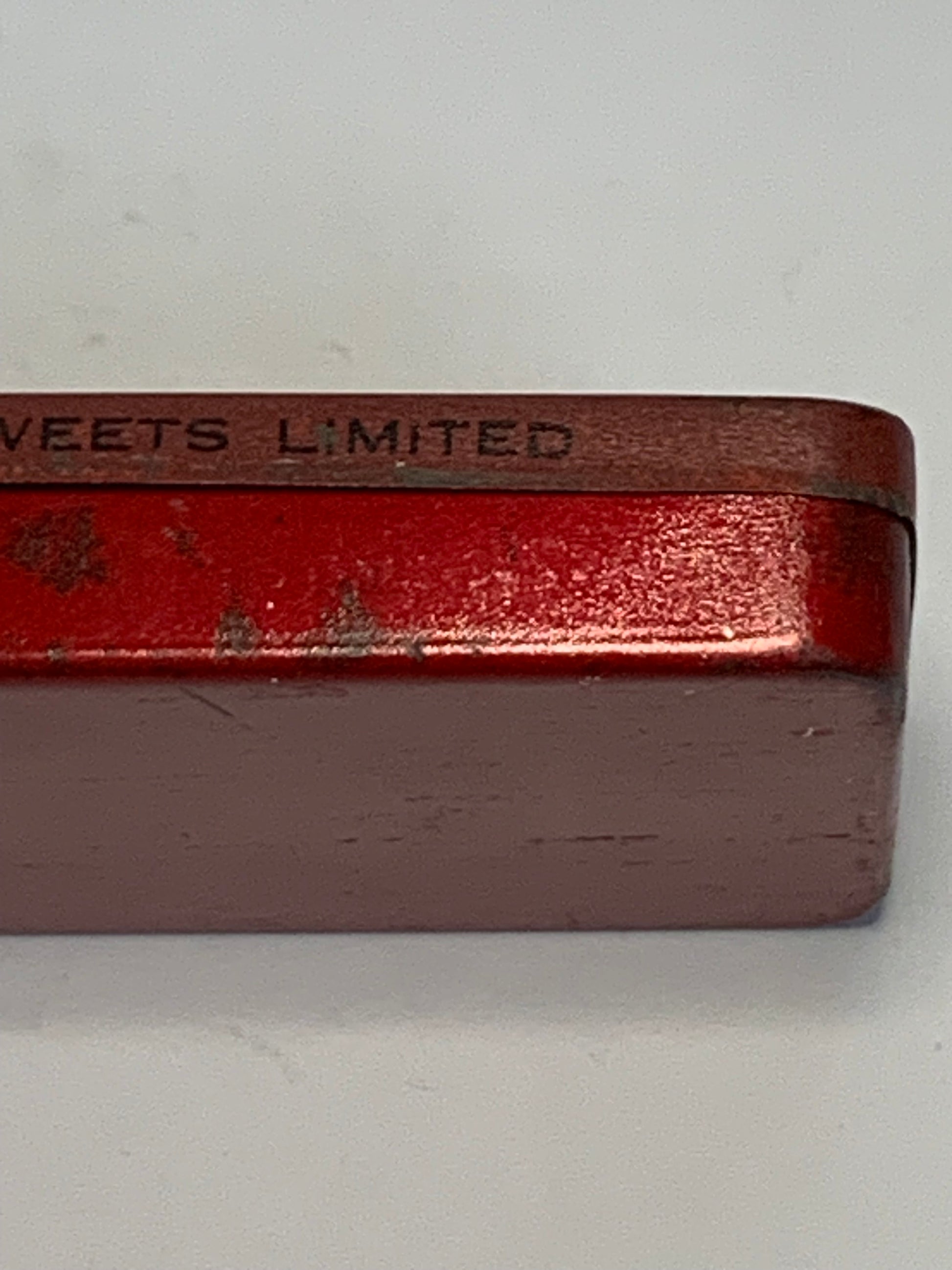 This is a vintage rectangular tin for “Throaties” throat lozenges/medication. The tin features: