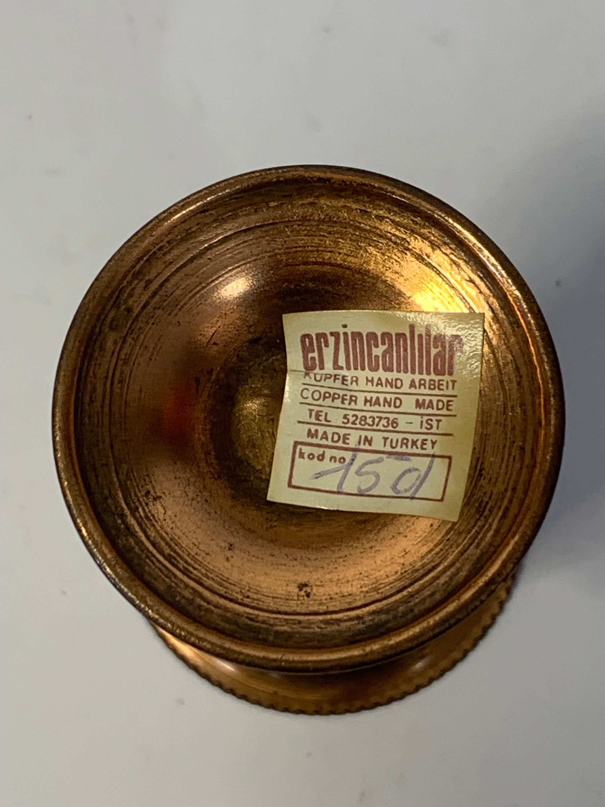 ∙ Construction: Hand-hammered copper with turned circular rings visible on interior